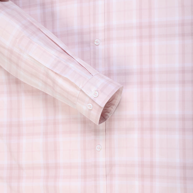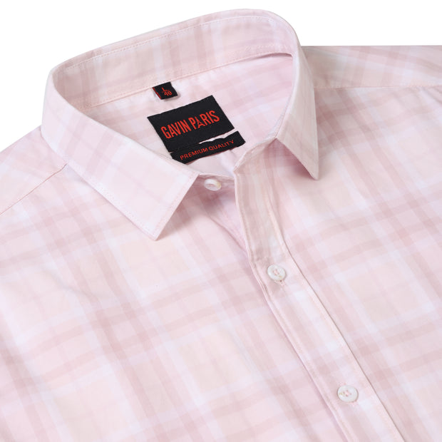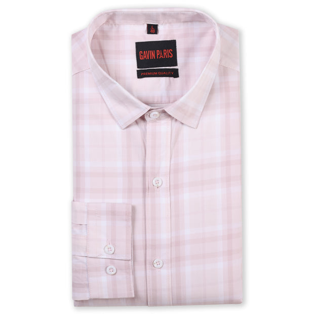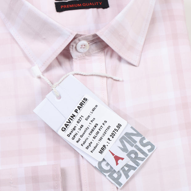 Light Pink Checkered Slim Fit Cotton Men's Full Sleeve Shirt (GP348)