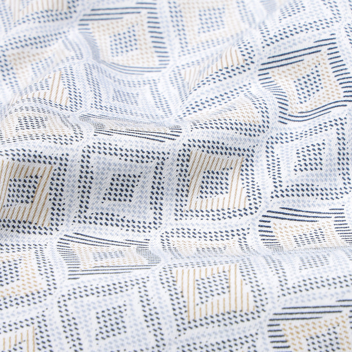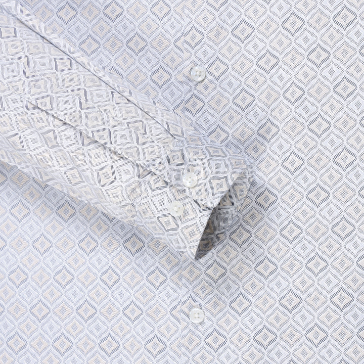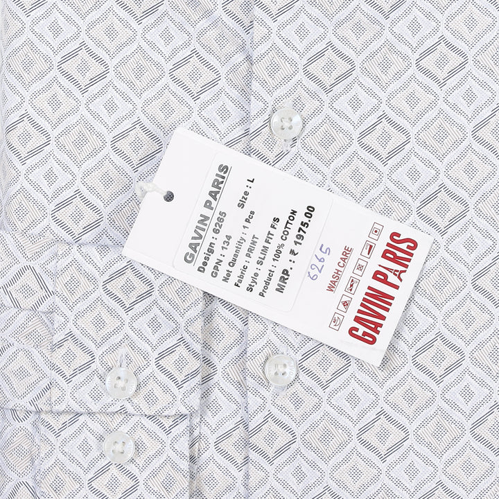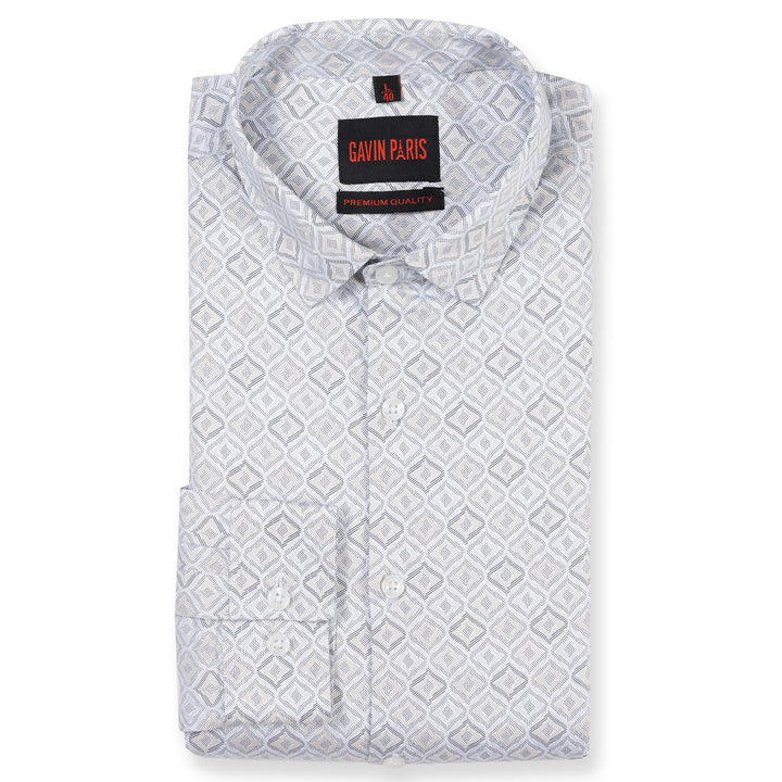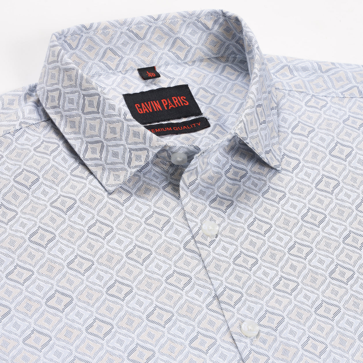 Shop the Gavin Paris Premium Full Sleeve Shirt - Blue and White Geometric Pattern now and add a touch of sophistication and comfort to your wardrobe. Available in multiple sizes.