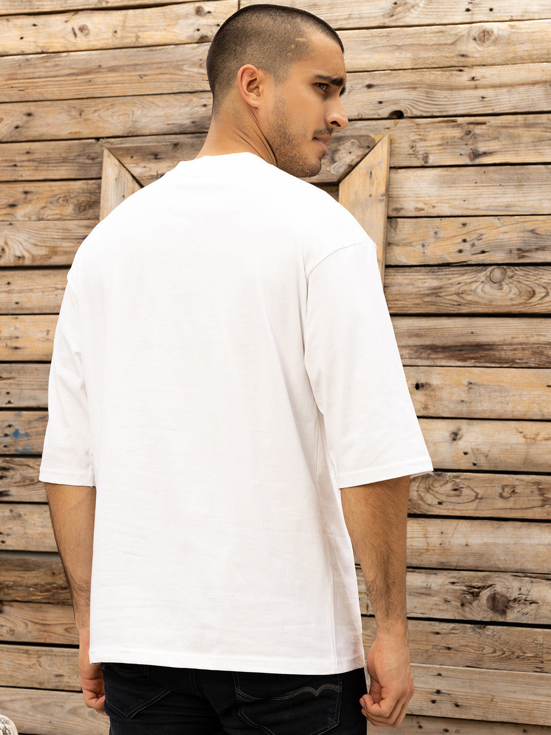 SpecsUnisexNeck: Crew/ Round NeckSleeves: Half Sleeves / Three Quarter Sleeves Features: Bio Washed, Preshrunk, Silicon Washed FabricLight weight (Improves breathability in hot conditions as well)Comfort (Bio washed fabric with Relaxed fit does not cling to the body)Oversize drop shoulder fitComposition and careMaterial: 100% CottonWash Care: Machine wash. Wash in cold water, use mild detergent Dry in shade Inside Out Do not iron directly or scrub on print Do not bleach, do not tumble dry.